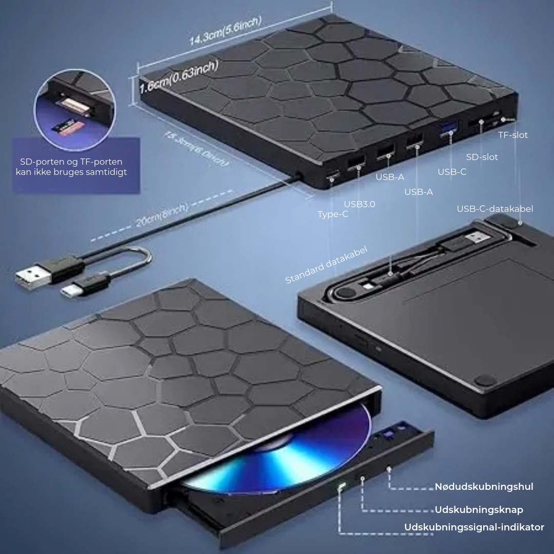 8-i-1 Ekstern CD/DVD-afspiller – afspil, brænd og gem film, musik og fotos