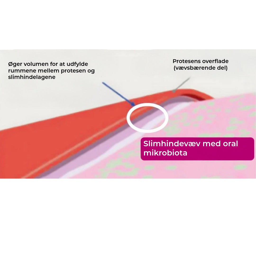 Derfor er der udviklet en moderne løsning, der fjerner de daglige irritationer ved proteser. Den avancerede, varmeaktiverede formel tilpasser sig perfekt til tandkødet og danner en personlig forsegling, der holder protesen sikkert på plads i op til fire hele dage. Ingen rod, ingen forskydning – og ingen grund til at skjule dit smil.