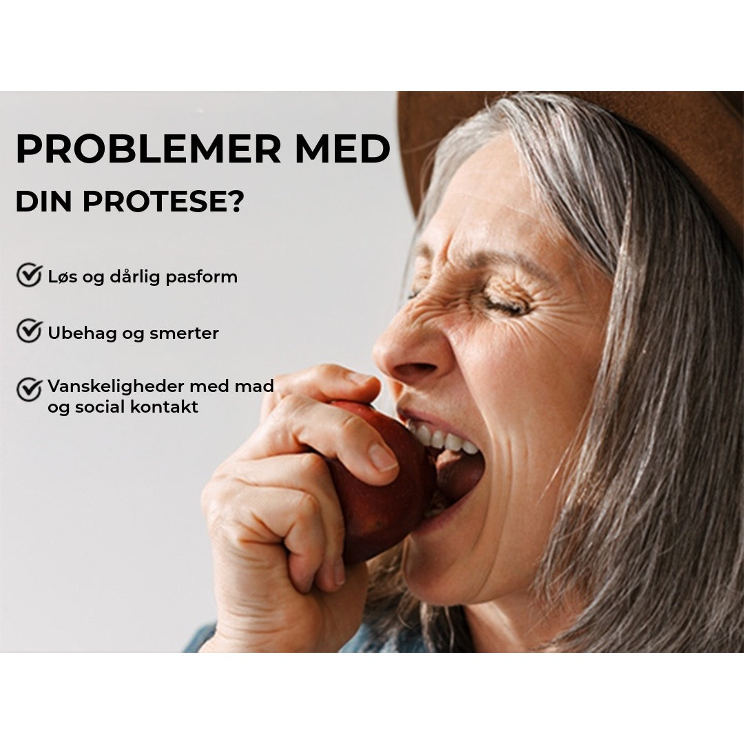 Sig “farvel” til løse proteser, klistrede pastaer og daglige justeringer. Nyd flere dages stærk hæftning, komfort og selvtillid.