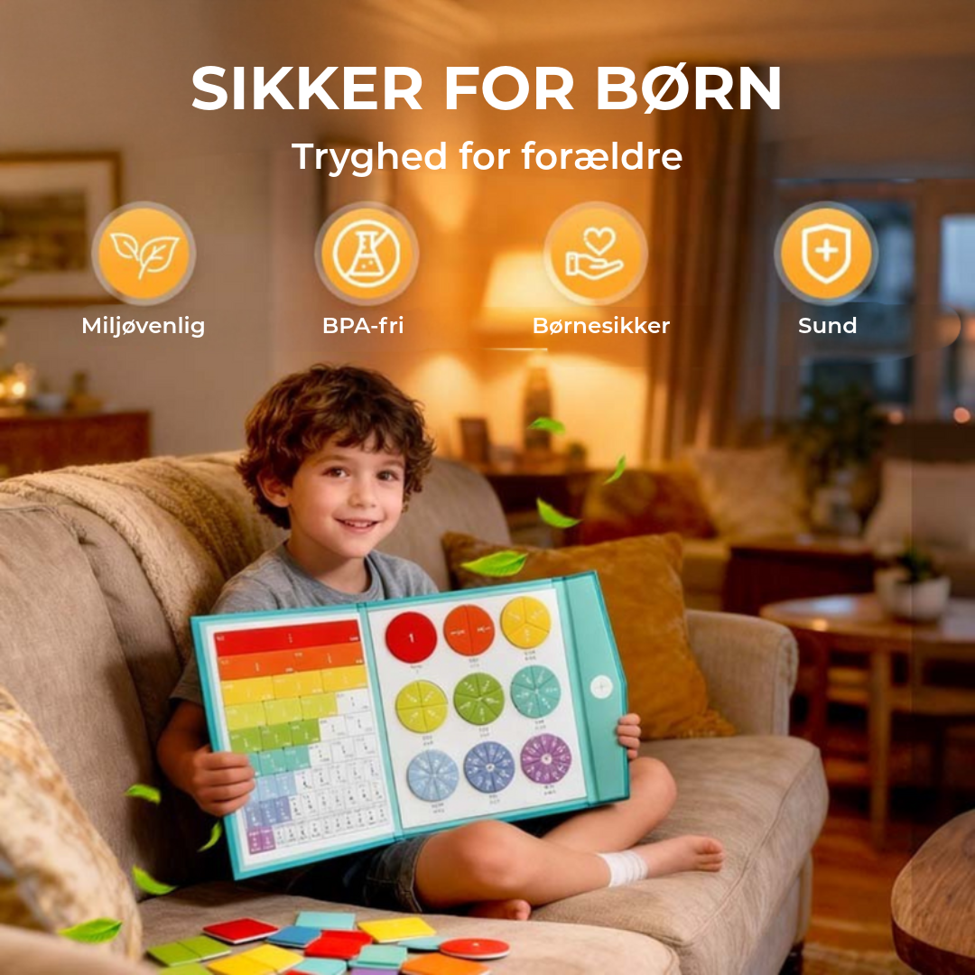 Det, der gør denne brøkbog virkelig speciel, er den magnetiske teknologi, som sikrer, at brikkerne bliver siddende på plads. Det gør den ikke kun nem at bruge, men forhindrer også, at delene flytter sig ved et uheld. Det giver børn mulighed for at lære selvstændigt og uden frustration.