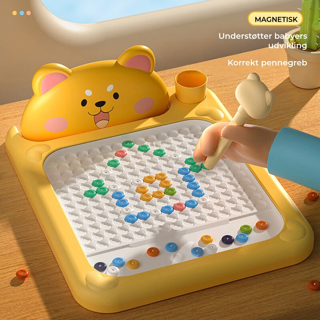 Hver farvet kugle klikker på plads, mens børn tegner og skaber med den magnetiske pen. Stimulerer kreativitet, hånd-øje-koordination og finmotorik – alt imens de har det sjovt.